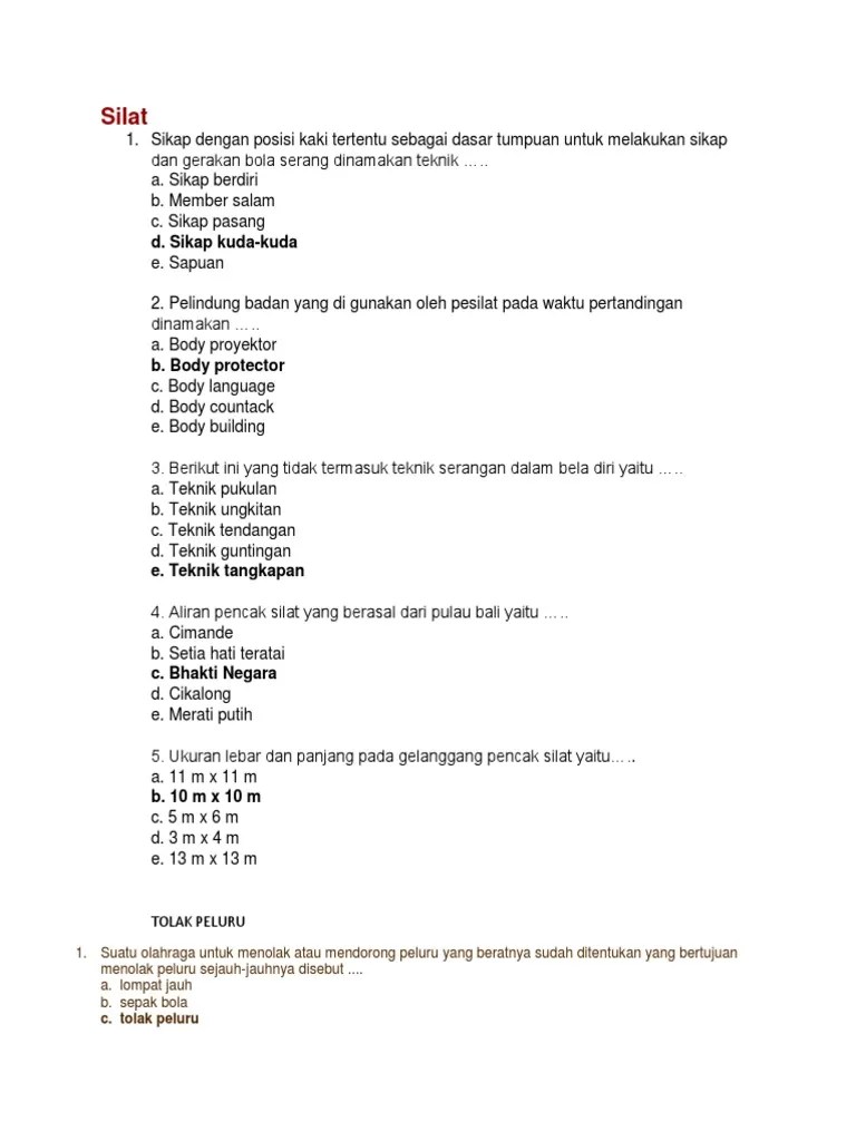 Pengertian pencak silat menurut ipsi adalah hasil budi daya manusia indonesia untuk membela dan mempertahankan eksistensi (kemandirian) dan integritas (kemanunggalan) terhadap lingkungan alam dan sekitarnya untuk mencapai keselarasan hidup dalam meningkatkan iman dan takwa kepada tuhan yang maha esa. Perlengkapan gelanggang pencak silat a. 10 m x 10 m. pencak adalah gerakan beladiri tanpa lawan, sedangkan silat adalah gerakan beladiri yang tidak dapat dipertontonkan. 6 m × 6 m 45. Lantai pada gelanggang harus dilapisi matras yang memiliki ketebalan maksimal 5 cm. 10 m x 10 m. Belaan adalah suatu usaha mempertahanka diri yang dilakukan baik dengan tangan maupun kaki sewaktu menerima serangan. 10 m × 10 m b. 8 m × 8 m. Dibawah ini yang bukan teknik serangan dalam bela diri adalah …. 11 m x 11 m b. ukuran panjang dan lebar gelanggang pencak silat adalah ….